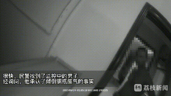 之后,民警很快找到了视频中的男子胡某。据胡某交代,这个液化气钢瓶是自己家里闲置的,罐内还剩了一点液化气,当天晚上他打算把罐子卖掉,于是便拎着钢瓶去小区里放掉残液,没想到浓重的煤气味惊动了这么多人。