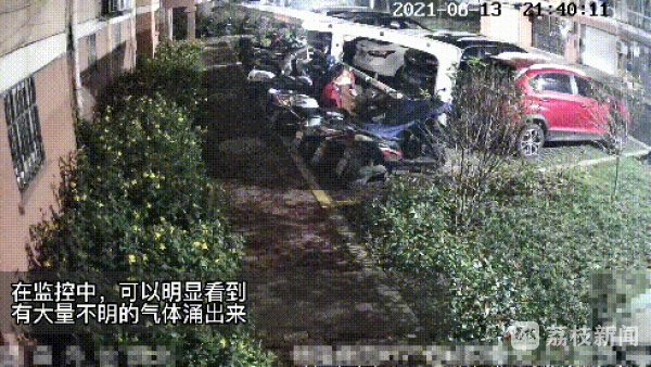 当天晚上9点40分左右,在监控画面中明显可以看到有大量的“水汽”出现,应该就是散布到空气中的液化气凝结而成。