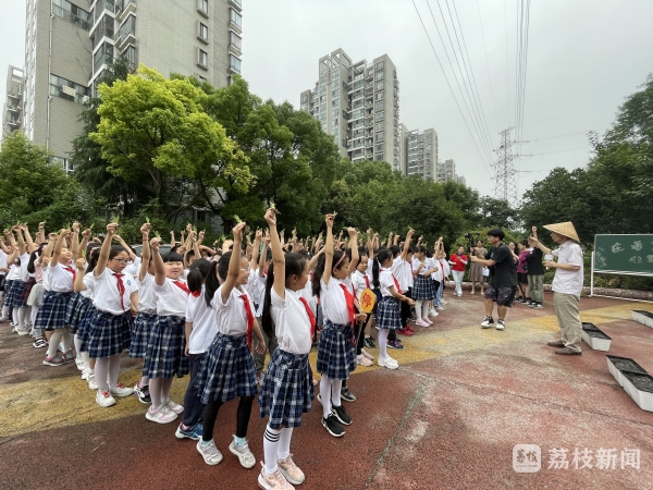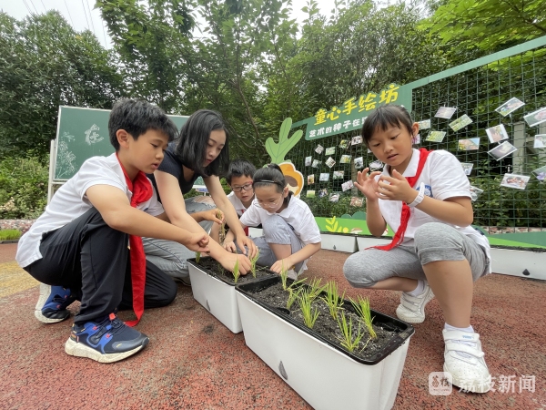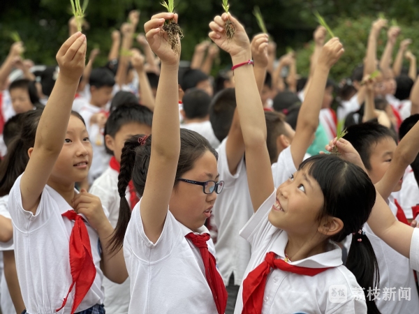 南理工实验小学的实践园近10000平方米,园子里种着梨树、桃树等,依托实践园资源学校也形成了特色校本课程“城市小农夫课程”。学校副校长许小娟说,成长礼是孩子成长中关键一环,结合劳动教育开展“四个一”活动。包括体验一次采摘活动,让学生品香甜果实,庆丰收喜悦;通过一次插秧,让学生真正体验到实践的快乐和播种的欢乐;上一节班会,和袁隆平院士“隔空对话”;拍一张照片,让三年级同学感受10岁对人生的特殊意义,学会表达、学会交往、学会感恩。