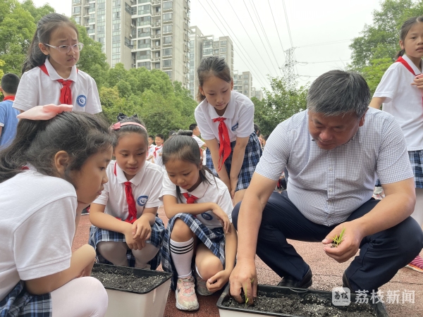 十岁,浸润着成长的美好。今天,南京理工大学实验小学举行了一场特殊的成长礼,来自江苏省农业科学院的专家带着471名学生一起学插秧,用劳动记录成长的印记,分享成长的喜悦。