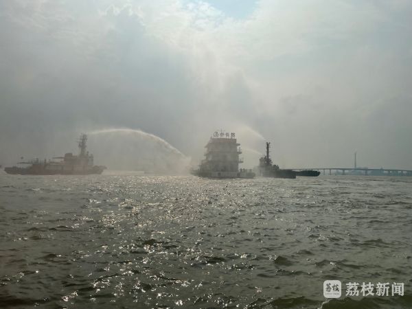 当天下午两点半,随着总指挥的一声命令,综合应急演练正式开始。主场地崇海汽渡外侧水域江面平稳,视野开阔,船舶搁浅、消防、救生综合应急演练依次展开。