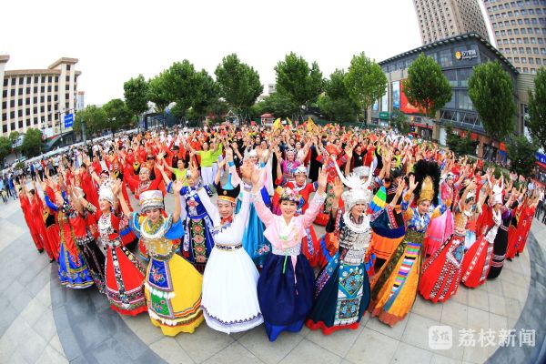 56个民族56朵花,56种语言汇成一句话:“爱我中华!”在女生合唱《爱我中华》之后上场的是民族服饰秀《锦绣大中华》,模特们穿着不同民族传统服饰的模特们向观众走来,边走边展示各民族服饰的独特魅力。周围的观众一边欣赏一边拍照、拍视频。一位模特告诉记者,买一套服饰要上千元,尽管只在台上表演几分钟,但是她非常自豪、开心,她说再贵也值得!