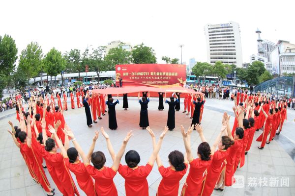 6月19日下午,盐城市中心的铜马广场上,歌声飞扬,舞姿翩跹,洋溢着一派欢庆、喜悦的氛围。这是该市“百城联动、千人共跳,礼献建党100周年”活动的现场,此场活动是由亭湖区文峰街道党工委、文峰街道儒学社区党支部主办的。
