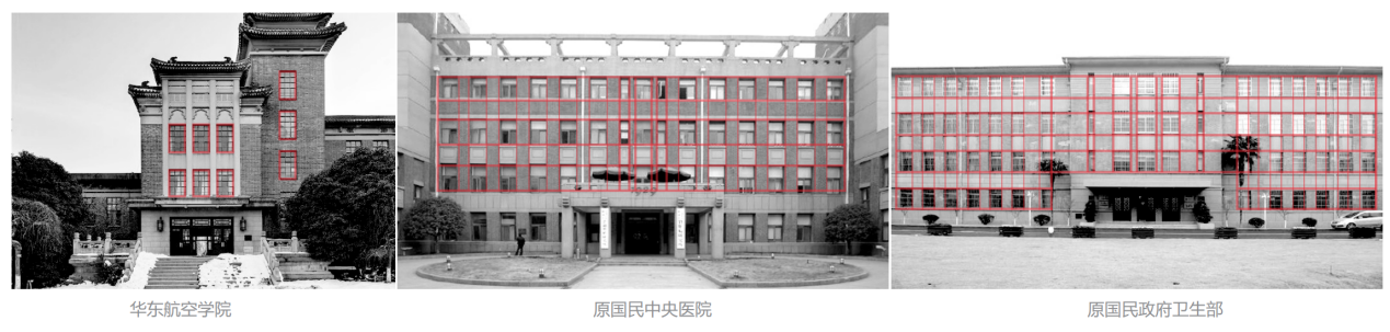 写字楼立面,借鉴南京民国建筑的格局纹理,追溯经典,保留民国建筑的特征,采用秩序格网作为构图元素,整体气质端庄典雅。