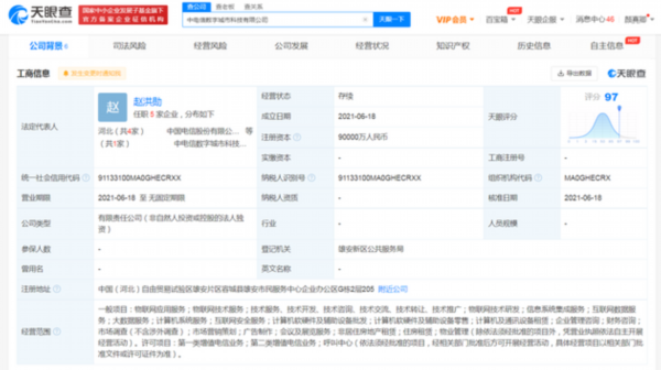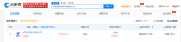 荔枝新闻讯 天眼查App显示,6月18日,中电信数字城市科技有限公司成立,法定代表人为赵洪勋,注册资本9亿人民币,经营范围包括物联网应用服务;信息系统集成服务;大数据服务;会议及展览服务;住房租赁等。 股东信息显示,该公司由中国电信股份有限公司100%控股。