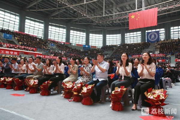 毕业典礼在全体奏唱江苏科技大学校歌声中告一段落。随后进行的学位授予仪式上,江苏科技大学学位委员会的全体导师全程站立,逐一为全体毕业生拨转流苏、颁授学位。现场摄影摄像师和出席嘉宾用各种记录设备,为毕业生们留下珍贵的高光记忆。
