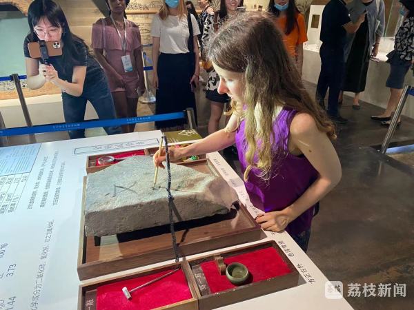 随后,外籍友人一行来到苏州御窑金砖博物馆,透过1000多块金砖藏品,隔空凝望着御窑金砖从阳澄湖畔的黄泥粘土到王朝最高殿堂的历炼过程。来自孟加拉国的外籍友人王迪成平时就很爱研究中国传统文化,对于金砖的发展史听得津津有味,“我们来到中国是想了解更多的当地文化,能来到金砖博物馆一睹实物风采,感觉很棒。”