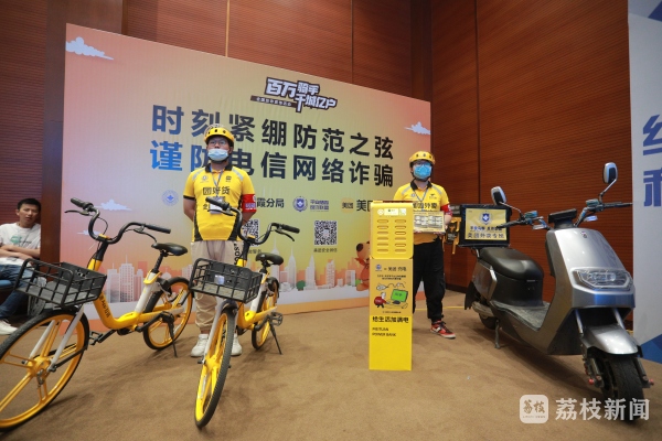 今天(6月22号)下午,“美、滴加盟,反诈同行”暨美团、滴滴加入反诈联盟启动仪式在栖霞区委党校礼堂举行。南京栖霞公安分局与滴滴、美团、江北公交等企业加强合作,共同推进反诈宣传工作。其中,就是投放了这种带语音提示功能的共享单车,先期在仙林大学城地区投放1000多辆。同时,警方发掘网约车司机职业优势,加入反诈宣传队伍,在出租车尾部喷绘反诈内容。司机李师傅说告诉记者:“现在车内播放反诈知识音频,车外有反诈宣传喷绘,平时跟乘客交谈可以宣传反诈知识,增强大家反诈意识,感觉自己身上责任重大,但是很有成就感。”