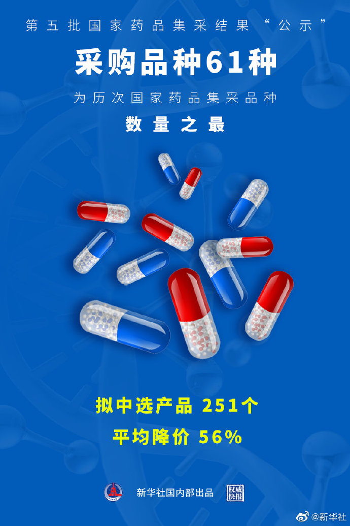 国家再次“团购”药品,实现以量换价。第五批国家药品集采拟中选产品251个,药品品种达到61种,为历次国家药品集采品种数量最多的一次,拟中选药品平均降价56%。此次集采品种覆盖高血压、冠心病、糖尿病、抗过敏、抗感染、消化道疾病等常见病、慢性病用药。