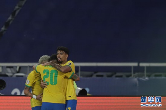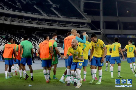 6月23日,巴西队球员在比赛中庆祝进球。新华社发(拉赫尔·帕特拉索摄)