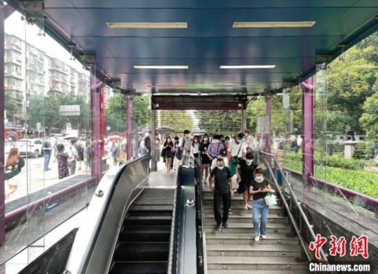 24日16时,乘客进入沙涌地铁站 陈骥旻 摄