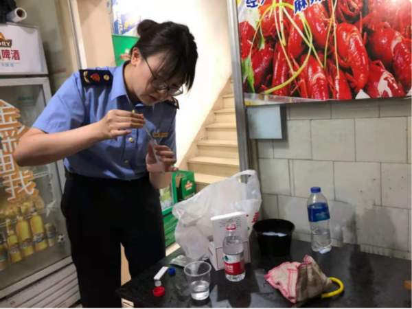 检查中,执法人员重点检查小龙虾餐饮单位的证照(营业执照、食品经营许可证、健康合格证明)持有情况、进货索证索票查验等各项食品安全制度落实情况、是否使用“洗虾粉”清洗小龙虾情况、是否使用未经检验或计量不准的电子秤等情况。