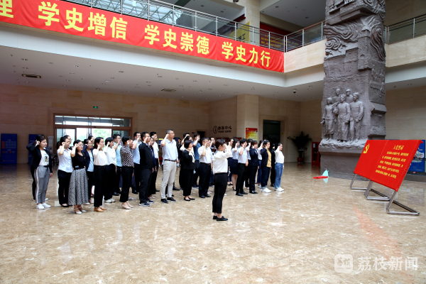 实境党课,让党史学习“动”起来。充分利用本地红色资源,创新开展“点亮红色地图·赓续红色基因”主题党日活动,赴东海县安峰山烈士陵园、赣榆抗日山烈士陵园等港城7个红色教育基地学习,将党员大会开到现场、将党课讲到现场、将入党誓词重温到现场,让党员干部汲取革命先烈理想信念的强大力量,以更饱满的热情、更务实的作风开展人社服务工作。