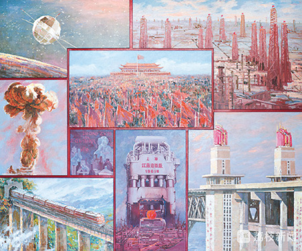 整个展出四部分作品,每部分的开头都是以组画形式为领衔,开启这一时期的美术篇章。作品聚焦重大历史事件、重大决策会议、重要建设成果和重要贡献人物。