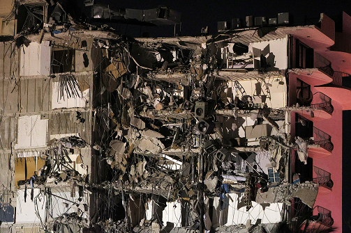当地时间6月24日,美国佛罗里达州迈阿密一公寓楼部分倒塌。