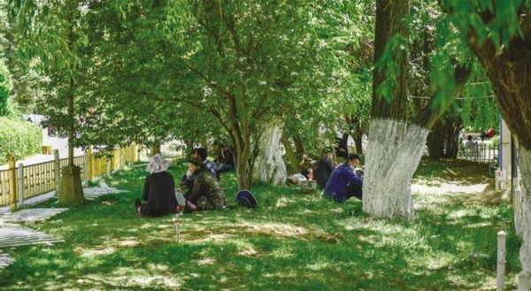 素有“日光城”之称的拉萨,夏季正午的阳光不免有些炽热,而此时,前往公园避暑是个绝佳选择。此时的公园,入目皆是绿意。古树伸展着翠绿的枝桠,鸽子在绿油油的草地上漫步,枝条垂落在石椅上方,一位老奶奶坐在石椅上拿着刚从街边买的酸奶冰淇淋,一脸慈爱地看着自己的小孙女……这样的场景美好又温馨。