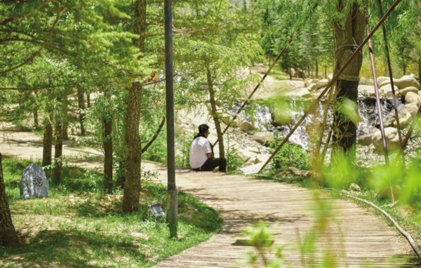 除了乘坐游船感受慢时光,也可以前往南山公园登高望远。现在的南山公园绿意盎然,山上苗木郁郁葱葱,木桥下流水叮咚,布达拉宫的倒影掩映在湖面上,游人嬉笑打闹,心情也会瞬间舒畅、明朗很多。