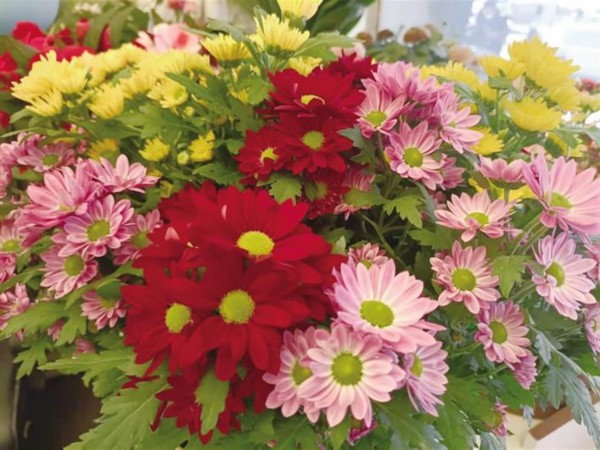记者来到拉萨市城关区红旗东路的花卉市场。路边的花卉销售店依次排开,样式各异的盆栽摆满了花架,有亭亭玉立的白掌、色泽艳丽的红掌、圆润可爱的乒乓菊、明艳多姿的三色彩菊以及安娜菊、高雅纯洁的百合花等。各类鲜花竞相绽放、争奇斗艳,空气中弥漫着鲜花的阵阵清香。