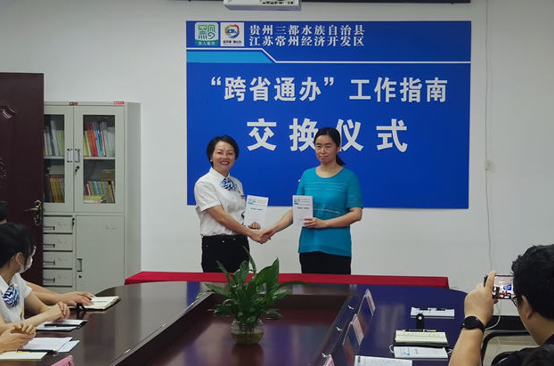 到专窗提出办理需求,提交相关材料,25日起在常州经开区的贵州三都人办理“异地就医备案”事项仅需这两步,常州经开区社保服务专窗就会即时与三都县政务中心联系处理,不到1小时就可完成业务办理。而原来,往返两地3000余公里,耗时至少1个星期。6月24日,常州经开区与贵州三都水族自治县两地“跨省通办”政务服务开通,两地在常州经开区现场模拟运行了“公司设立登记”“异地就医备案”三都事项。