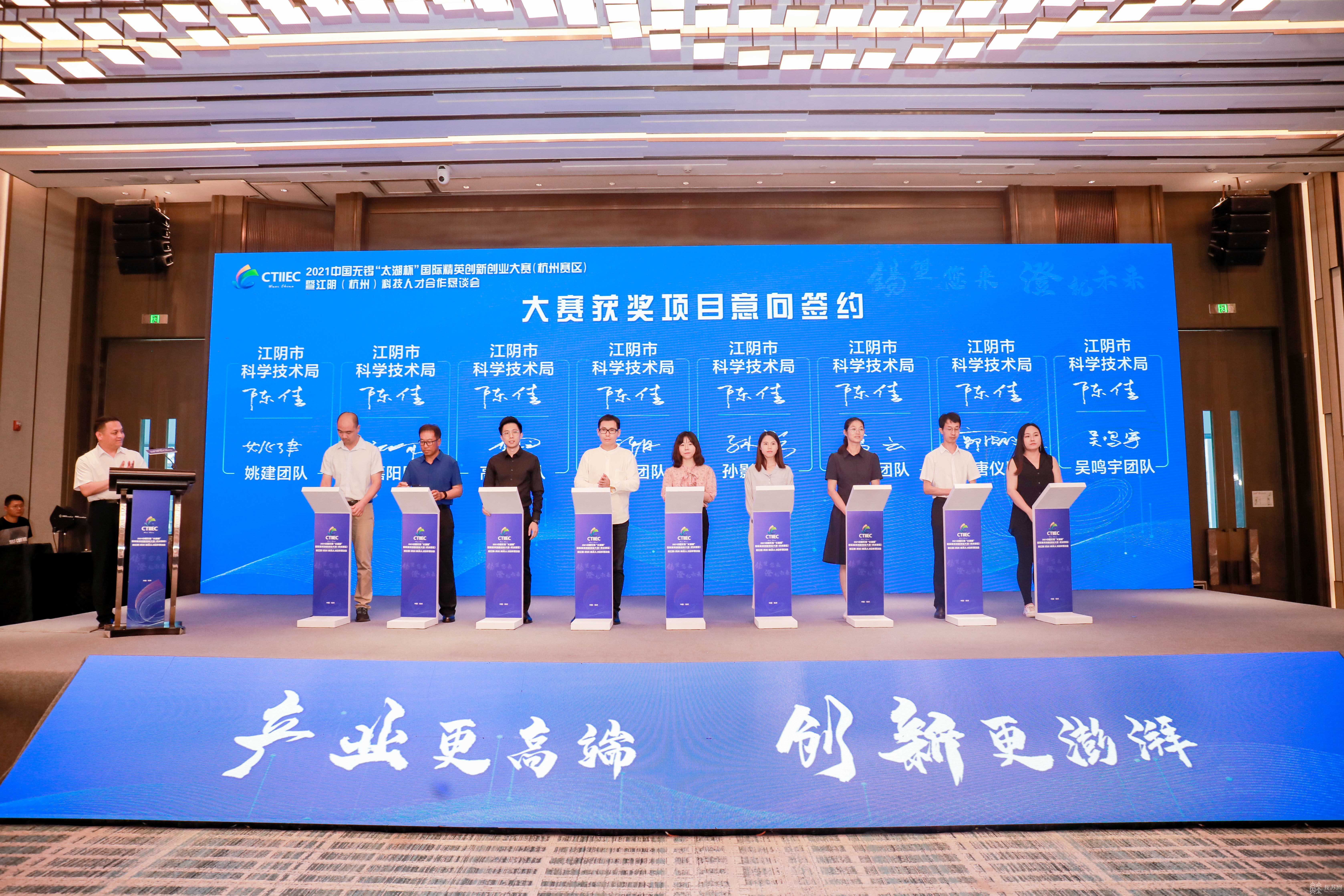当天,2021中国无锡“太湖杯”国际精英创新创业大赛(杭州赛区)16个获奖项目与江阴达成落户意向,浙江大学与江阴新国联签署智慧低碳综合能源系统校企联合研发中心框架协议。江阴聘请了6位引才大使、成立了5家高校引才联络站,还发布了“霞客之光”产业自主创新攻关计划项目。