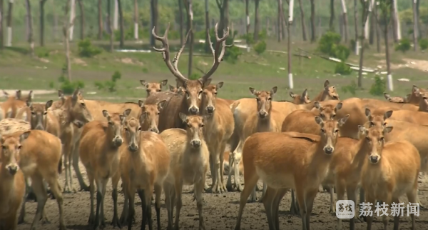 据统计,今年大丰麋鹿保护区新增仔鹿695头,截至5月底麋鹿总数增至6119头,占全国大概百分之七十以上,其中野生麋鹿种群达到2658头,成为当今世界上面积最大、数量最多、基因库最丰富、保护成效最突出的麋鹿自然保护区。