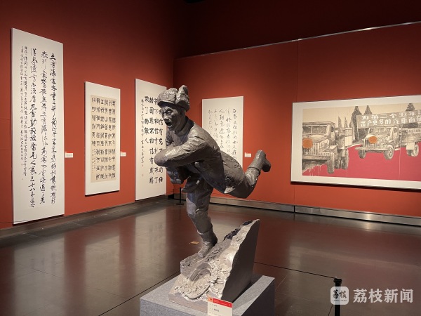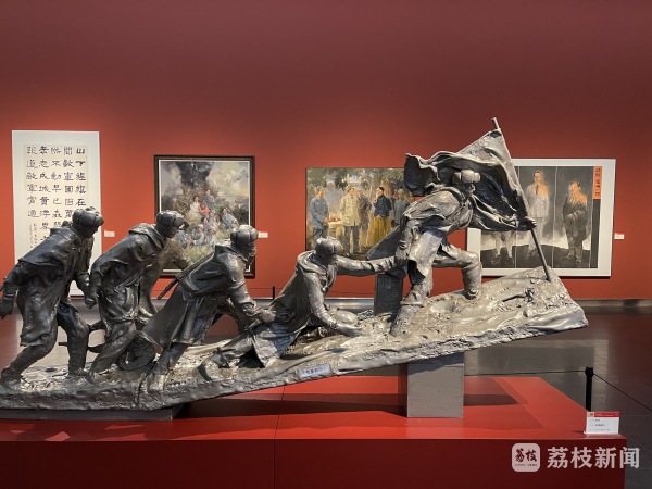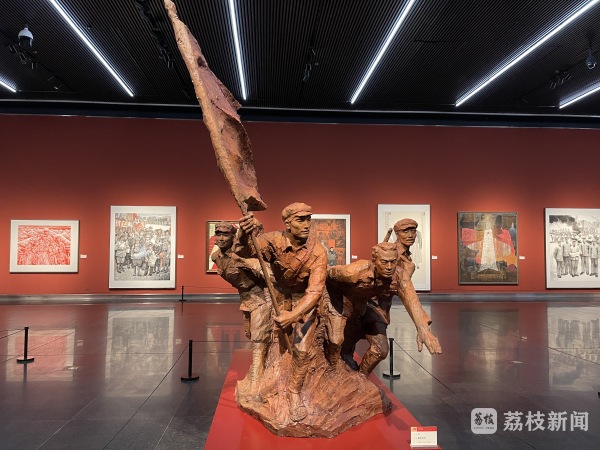 今天(6月26日)上午,由江苏省委宣传部、江苏省文化和旅游厅联合主办的“百年征程——江苏省庆祝中国共产党成立100周年美术书法精品展”在江苏省美术馆拉开帷幕。164件参展作品全景式、多角度,再现了百年党史中的重要节点、重大事件、典型人物,向党的百年华诞献上一份丹青厚礼。