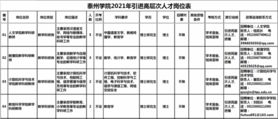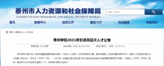最新消息 泰州学院面向市外公开引进30名高层次人才。
