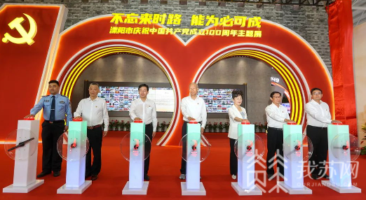 6月25日上午,溧阳市燕山中学城投艺体馆内,7位优秀党员代表同时按下启动键,为溧阳市庆祝中国共产党成立100周年主题展揭幕。市四套班子党员领导,先进基层党组织、优秀党务工作者、优秀共产党员代表等参观展览,并在市委书记徐华勤的带领下,重温了入党誓词。