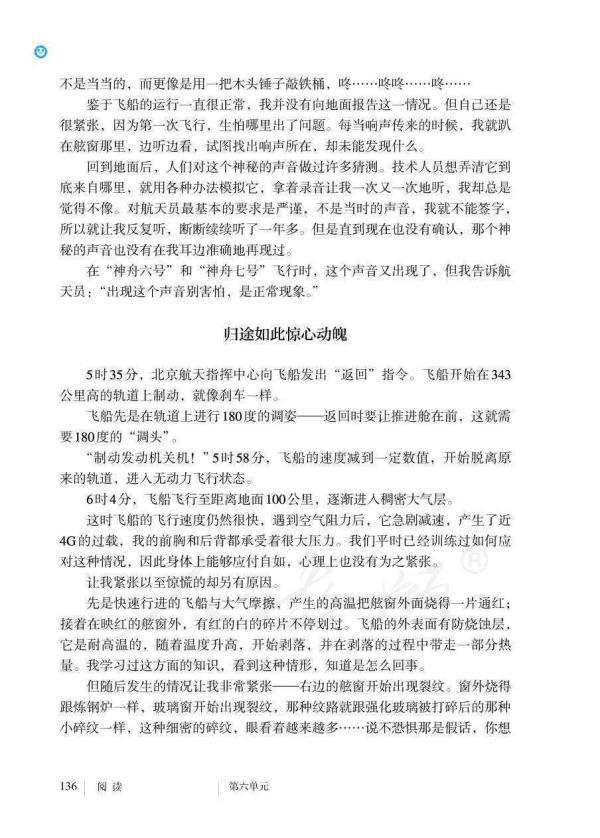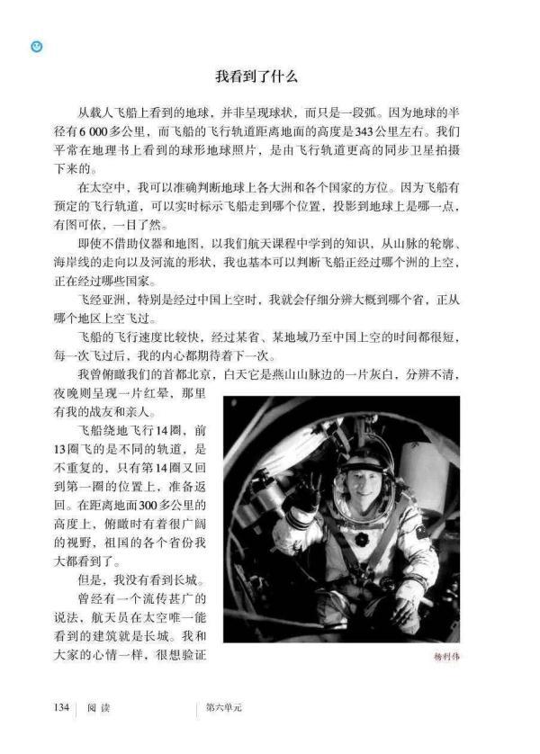 近日有网友发现,人教版七年级下册语文书中有篇课文名为《太空一日》,作者正是杨利伟。