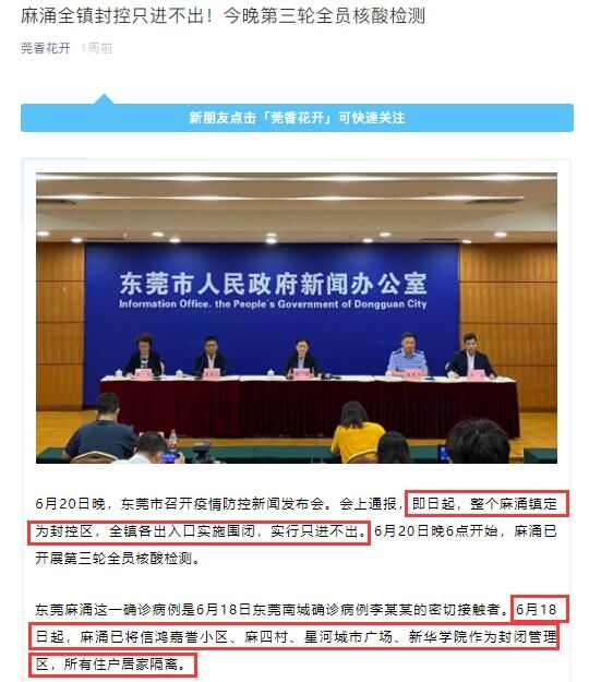 荔枝新闻讯 据东莞市人民政府新闻办公室微信公众号6月27日消息,东莞市新型冠状病毒肺炎疫情防控指挥部办公室发布通告(第40号),称调整东莞市封闭、封控管理区域及相关防控措施。全文如下: