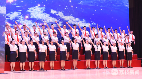 “没有共产党就没有新中国,没有共产党就没有新中国......”伴随着激昂的旋律,所有参赛队伍、街道班子成员等百余名党员走上舞台,在挥动的党旗、国旗下,齐声高唱《没有共产党就没有新中国》。在雄壮的歌声中,大合唱比赛落下了帷幕。