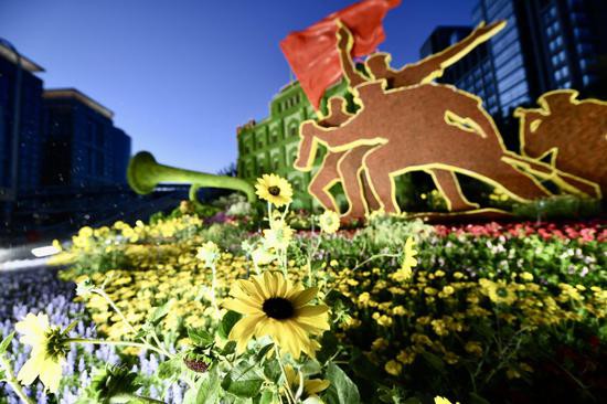 东城区在钟鼓楼广场、安定门桥头、张自忠路西南角、五四大街、前门大街北广场、天坛东门东侧等9个重要点位,布置10座立体花坛;西城区以“喜迎庆典 共谱乐章”为主题,在中轴路设置5处大型立体主题花坛,在5处区属重点公园内设置中小型立体主题花坛。造型别致、色彩艳丽的花卉组合,成为献给城市的节日礼物。