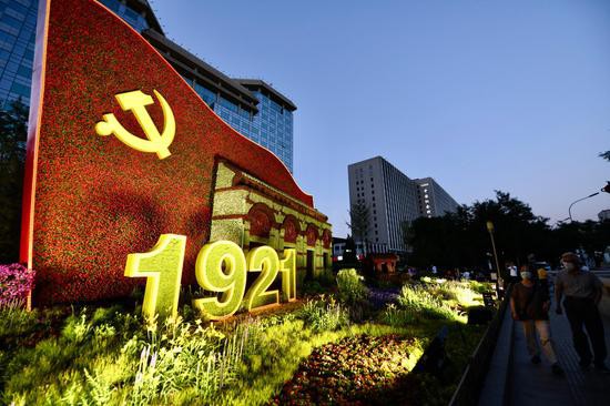 “百年征程波澜壮阔,百年初心历久弥坚”“热烈庆祝中国共产党成立100周年”……天桥上、公交站台、户外显示屏上,一条条标语振奋人心。