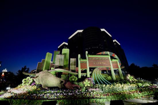 节日前夕,全市范围重要区域、道路节点设置花坛花卉1006个,组合容器花钵7900余组,花箱1万余个,地栽花卉32万平方米,营造花团锦簇、绿意盎然、欣欣向荣的城市绿化景观。