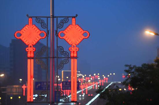 长安街上,大红灯笼、中国结亮起来了。节日前夕,全市在长安街及其延长线、奥林匹克区域、31处革命旧址周边等重点区域及居民小区、街巷胡同悬挂灯笼灯饰1.5万余套。市城市管理委相关负责人南斌介绍,出于节俭的考虑,灯笼灯饰和中国结都是利旧,全部是今年春节期间用过的。