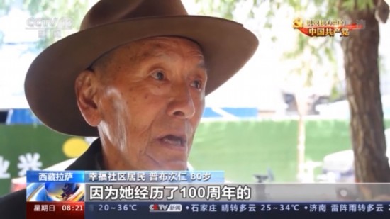 西藏拉萨幸福社区居民 普布次仁(80岁):因为她经历了100周年的一个漫长的历史,因为她带领人民群众为解放事业做出了伟大的功勋。我是百万翻身农奴的其中之一,旧社会是什么样的社会,那么现在的社会又是什么样的,我是经历了两种社会的人啊!感到今天这种幸福生活是来之不易,那么有今天这样一个美满的家庭,感到很高兴,我心里很感激党,所以我永远跟着党走,听党的话。