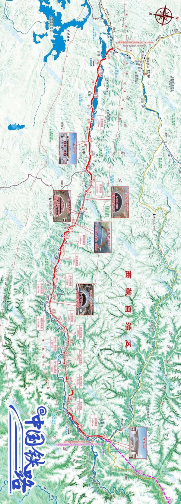 拉林铁路沿着青藏高原冈底斯山与喜马拉雅山之间的藏东南谷地行进,90%以上的线路海拔在3000米以上,16次跨越雅鲁藏布江,沿线山高谷深,相对高差达2500米,施工难度极大。