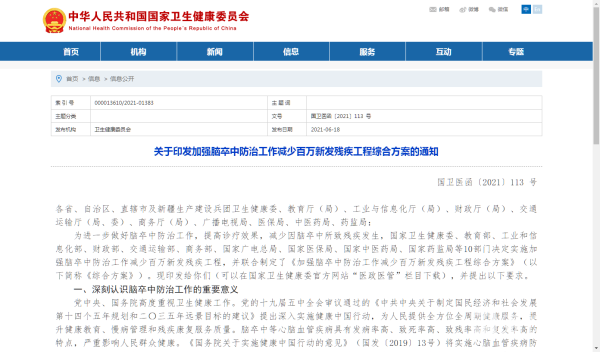 此次10部门联合制定的方案目标是实施脑卒中的综合防控,包括健康宣教、开展高危人群筛查和干预、推广适宜技术,加强脑卒中急诊急救、规范实施治疗和康复随访。方案明确,医疗机构对需要紧急救治的脑卒中患者实行"先诊疗、后付费",不得因费用原因延误救治,还要建立急救绿色通道,打造"一小时黄金时间救治圈"。