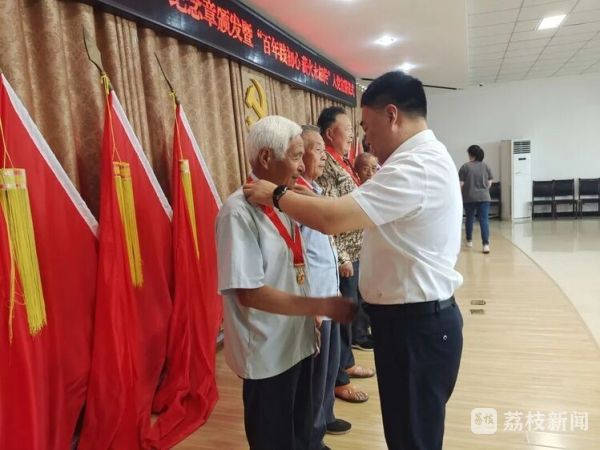 泗阳县裴圩镇为老党员颁发“光荣在党50年”纪念章。