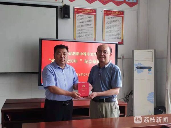 泗阳中专为老党员颁发“光荣在党50年”纪念章。