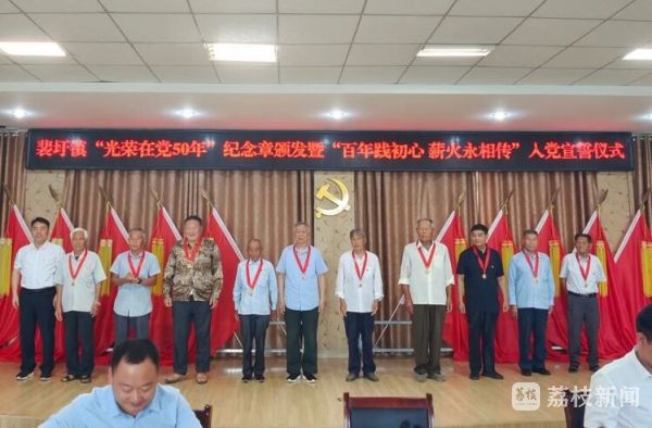 近日,泗阳县裴圩镇、泗阳中专相继举行了“光荣在党50年”纪念章颁发仪式。纪念章的颁发,见证着老党员的无悔初心,增强了广大党员的干事热情,更激励着新党员的继续奋斗。