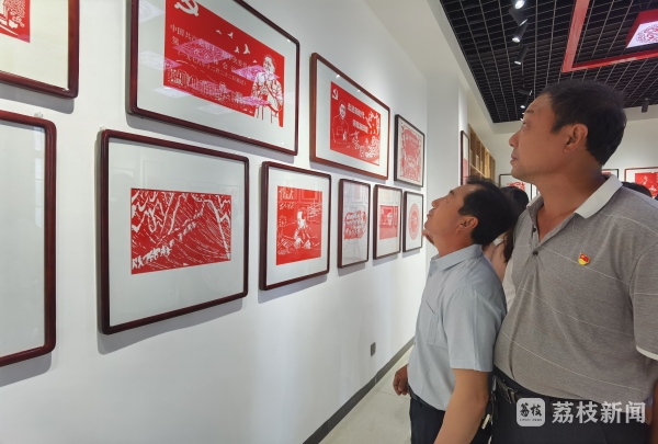 6月26日上午,在宿迁市泗洪县半城镇的群众文化中心展览馆,由当地刻纸门花非遗传承人张仁高、苏立功筹办的“建党百年 刻纸铭心”主题刻纸作品展正式开展。