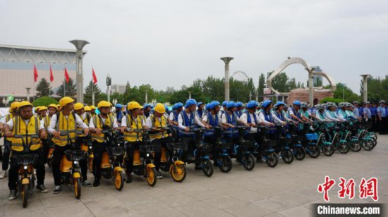 中新网银川6月29日电 (记者 李佩珊)“共享单车的安全头盔是不收取任何费用的,只要像往常一样扫码骑行就可以。”6月28日上午,哈啰出行宁夏银川负责人彭昆向市民讲解使用共享单车安全头盔的流程。当天,兴庆区举行共享单车文明骑行暨安全头盔投放启动仪式,今后,银川所有共享单车将陆续配备免费安全头盔。