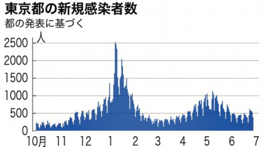 东京都最近半年的新增确诊病例数变化趋势图。(图片来源:《朝日新闻》)