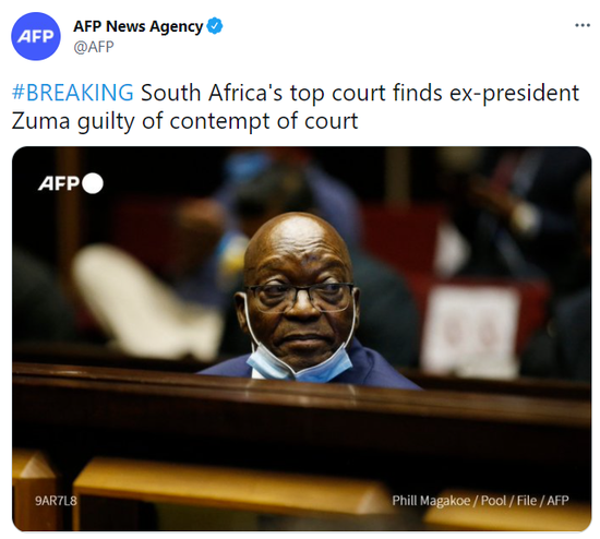 海外网6月29日 据法新社29日消息,南非最高法院裁定,前总统祖马藐视法庭罪成立。(海外网 王珊宁)