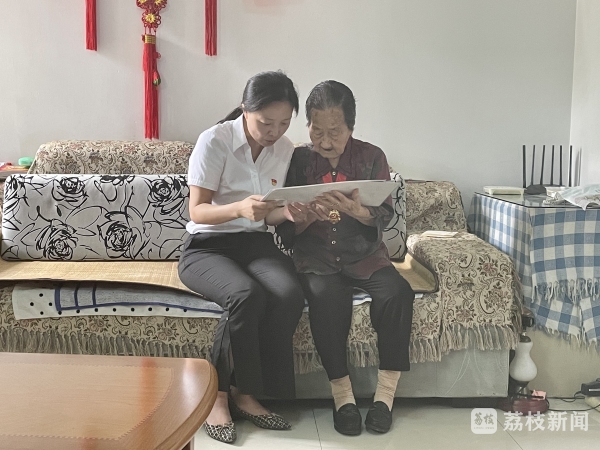今年刚好100岁的孙桂香老人与党同龄,1945年加入中国共产党。战争年代,她曾组织妇女群众为解放军做棉衣棉鞋,扛担架、送军粮,做了大量支援前线的工作。“我很高兴,我感谢党。我要教育好子女,叫他们也要听党的话,永远跟党走。”孙桂香说,自己从小没有父母,“是中国共产党救了我,党教育了我,我才有了今天的好生活”。