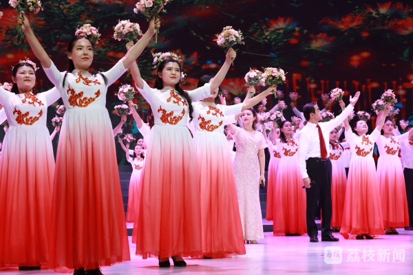数百人齐声合唱的《在希望的田野上》充满朝气与力量,唱出了在中国共产党领导下,我们在社会主义大路上阔步前行的豪迈气概。在全场合唱《走向复兴》中,整场演出被推向高潮!