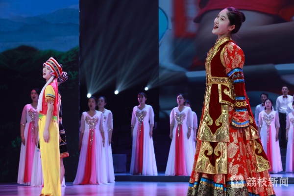 歌曲《党啊,亲爱的妈妈》《五星红旗》《绒花》等经典红色歌曲诉说着一百年来,一代代共产党人从未停下奋斗的脚步,走过一穷二白,如今屹立东方的奋斗历程。