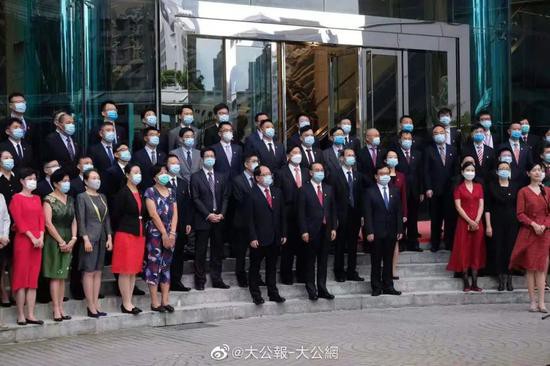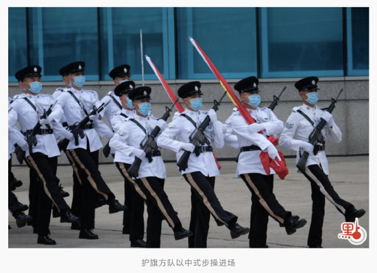 今日是香港回归24周年,适逢中国共产党成立100周年。外交部驻港特派员公署早上举行升旗典礼,多名人员出席。图源:大公报