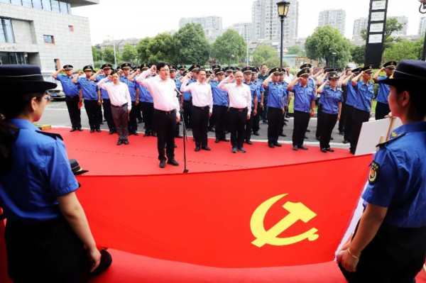 为引导城管系统全体党员树立新形象、扛起新担当、展现新作为,用实际行动庆祝中国共产党成立100周年。6月30日上午,相城区城管局全体党员和各板块城管系统党员代表在局大楼正门集中,重温入党誓词。